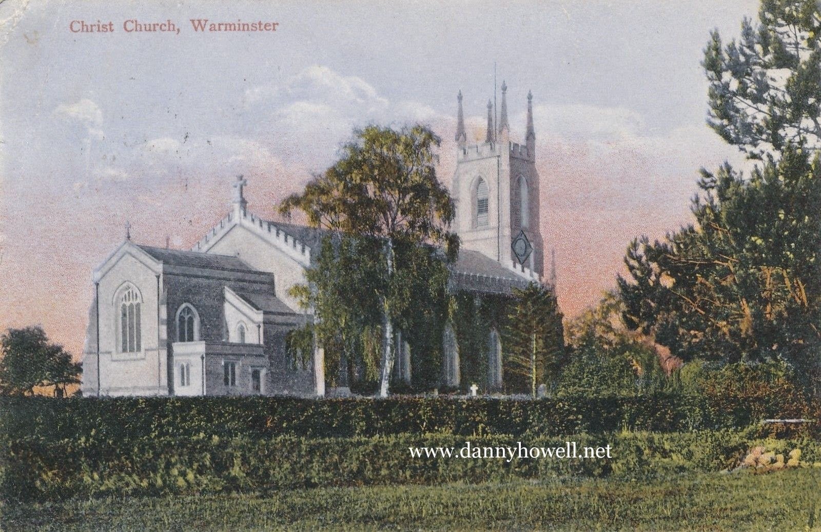 A Coloured Postcard View Of Christ Church, Warminster, Circa 1904 A coloured view on a postcard,circa 1904, of Christ Church, Warminster,seen from Upper Marsh Road.