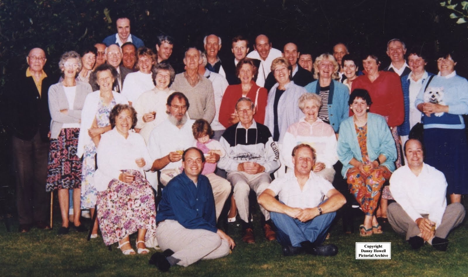 At the back: John Croad. In front of him: John Tiling’s uncle, Joan Tiling, Margaret Davey, Bill Parker, Dennis Davey, John Tiling, Margaret Aven, Matthew Butcher, Ted Rushen, Dave Pinnell, Derek Lawson, Derek Clarke, Barbara Dale, Colin Harrison, Audrey Harrison and Geoff Sims.