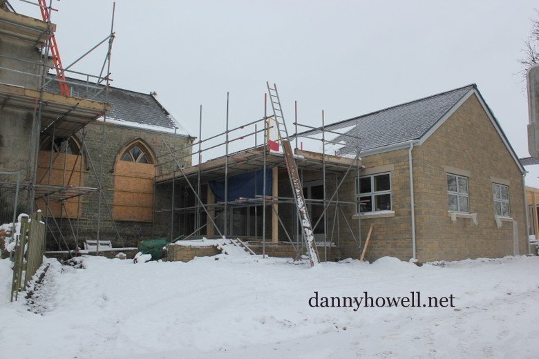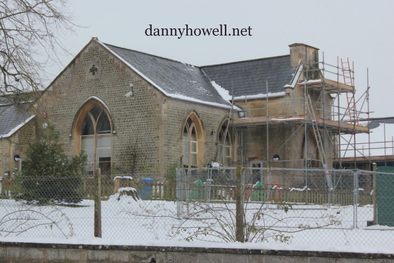 Scaffolding up and around the old school
