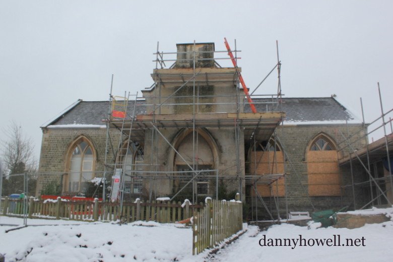 Scaffolding up and around the old school