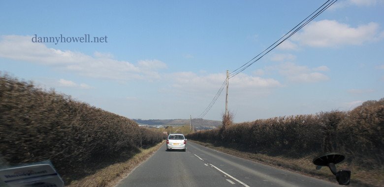 The view down Half Mile, on the A362, looking towards Warminster (taken from a travelling car).