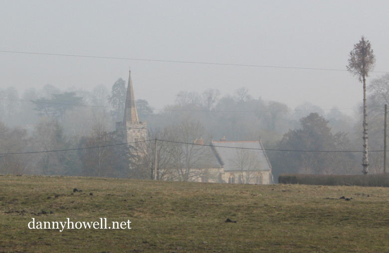 St. Aldhelm’s Church, Bishopstrow, in the fog on the morning of Wednesday 10th April 2013. The view looks north-east from the Bishopstrow-Sutton Veny road. The photograph was taken by Danny Howell.