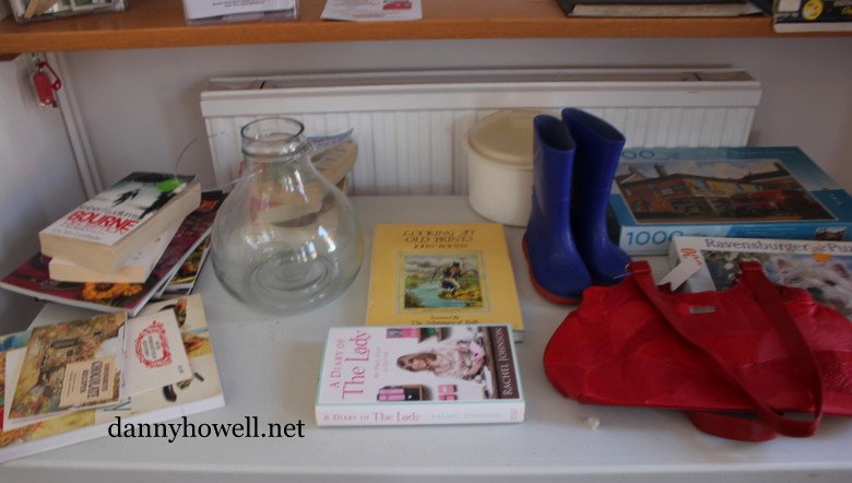 Secondhand goods including books and jigsaws.
