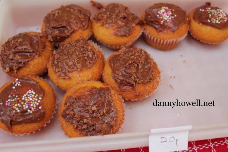 Home-baked cakes, 20p each.