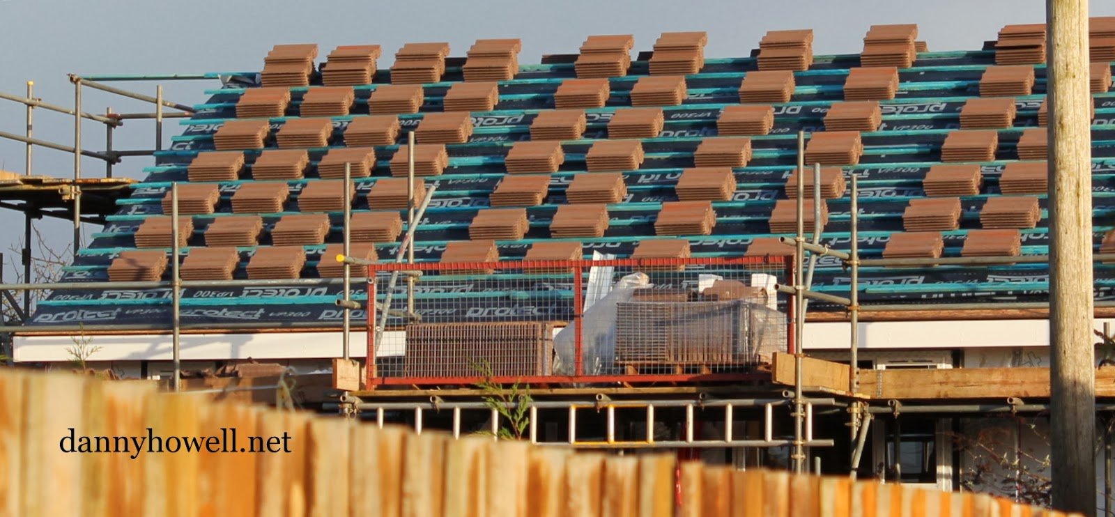Tiles ready for roofing for the new homes at Boreham Field, Warminster (on an area what was lock-up garages now demolished releasing a brownfield site). Photograph taken by Danny Howell on Sunday 26th January 2014.