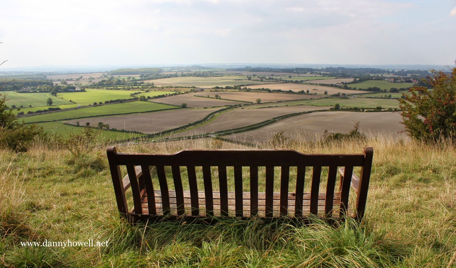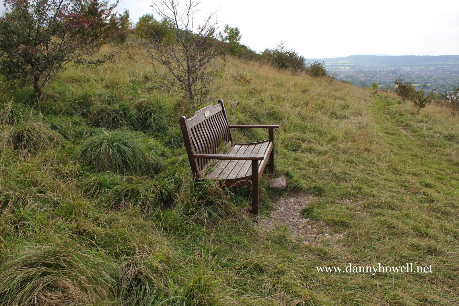 A seat on the south-facing slope of Arn Hill, Warminster, from which can be viewed the area between Warminster and Upton Scudamore, and beyond to Cley Hill and Longleat.