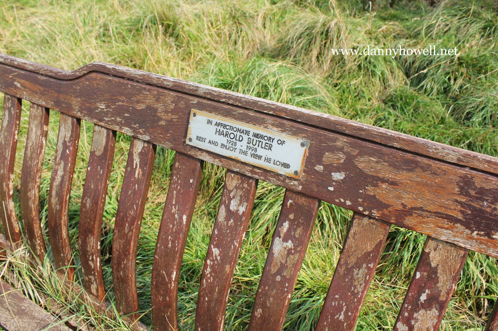 The wording on the plaque reads: “In affectionate memory of Harold Butler 1928 – 1998. Rest and enjoy the view he loved.”