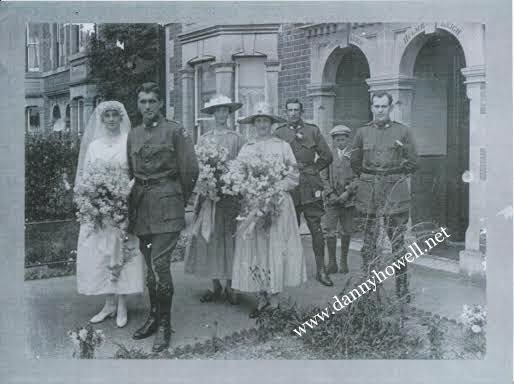 You may also be able to shed some light on the building behind the wedding party in the photo, as the building has words on the brick and block work on the front of the building – the words are HOLME LEIGH. Would it be a local building?