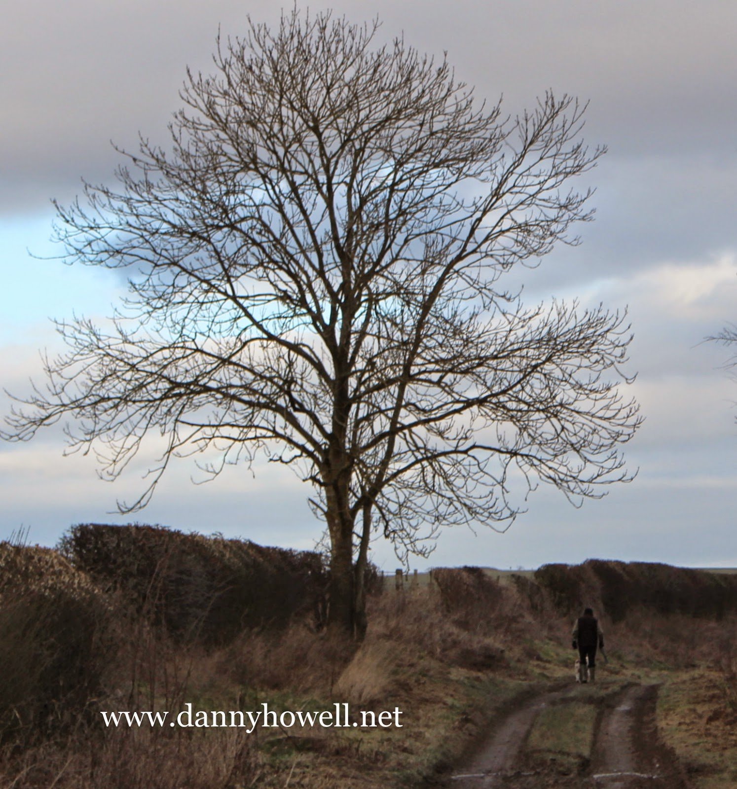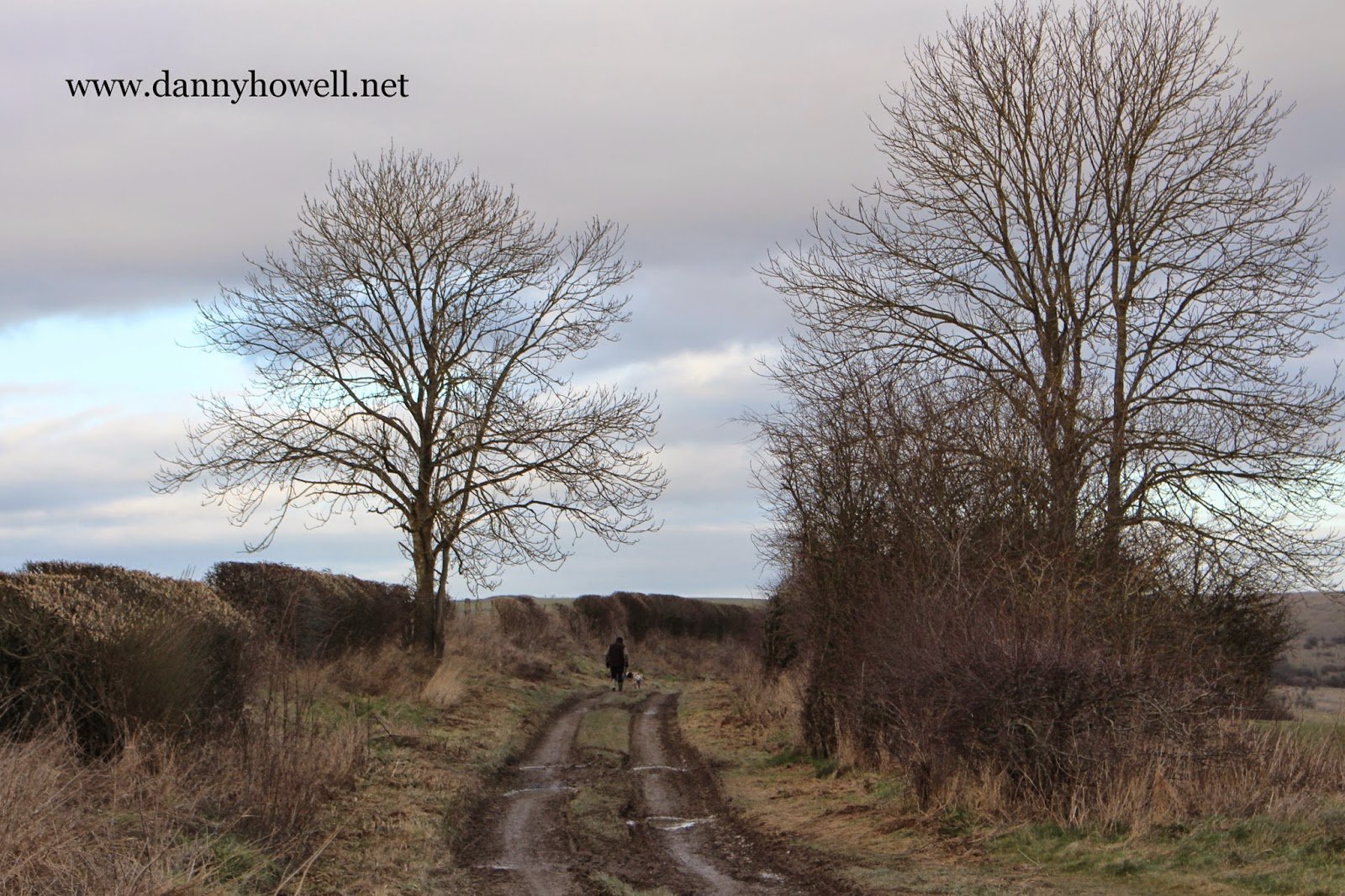 Walking At Norton Drove, Norton Bavant, As Dusk Approaches Sunday 1st February 2015 As daylight fades and dusk approaches,a walker on the Norton Drove,Norton Bavant. Photographs taken by Danny Howellon Sunday 1st February 2015.
