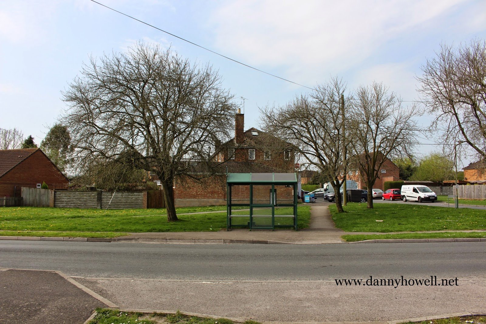 The bus shelter opposite The Dene, adjacent the green by the convenience shop at Boreham Field, Warminster. Photograph taken by Danny Howell on Thursday 16th April 2015.