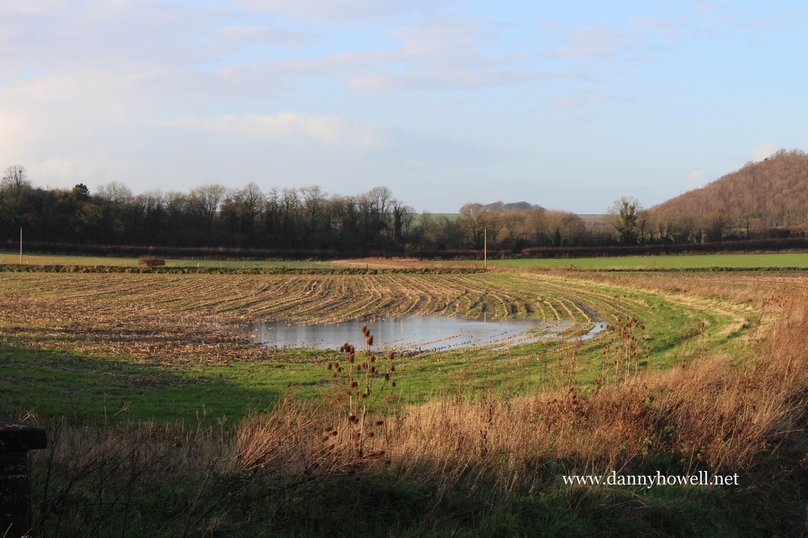 A View From The B3414 To Cox’s Drove Wood, Bishopstrow Sunday 3rd January 2016 View from the B3414 at Norton Bavant, over Gully Triangle, Dairy Field and Bridge Park (fields of Bishopstrow Farm), to Cox’s Drove Wood, Bishopstrow. Photograph taken by Danny Howellon Sunday 3rd January 2016.
