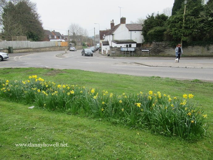 Daffodils At Elm Hill, Warminster Thursday 12th April 2018 Daffodils at the lower end of Elm Hill, Warminster, on the corner with Westbury Road. Photographs taken by Danny Howell on Thursday 12th April 2018.