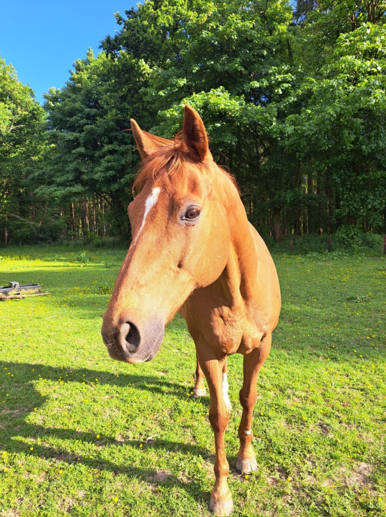 Zaream is the newest member of our herd of bachelors. He is an Arabian horse and a very sweet boy all round who even comes when called. He came from a neglectful situation before being rescued 10 years ago. We are now supporting him in his golden years.