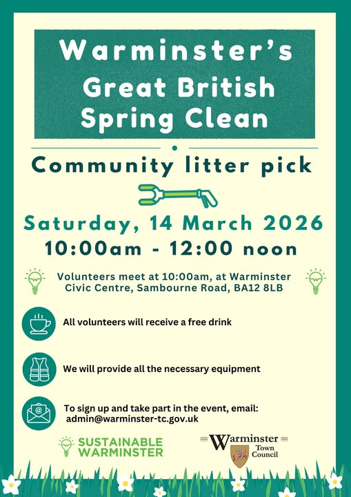 All equipment will be provided, and all volunteers will receive a free hot drink with the event jointly organised by Sustainable Warminster and Warminster Town Council.