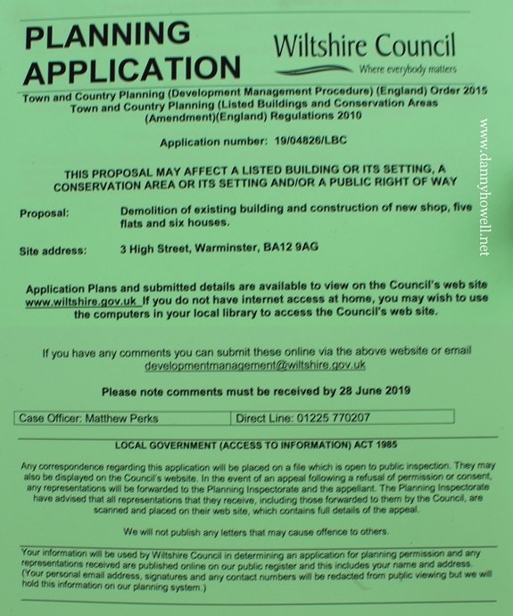 No.3 High Street, Warminster, BA12 9AG ~ Planning Application For Demolition Of Existing Building And Construction Of New Shop, Five flats And Six Houses Warminster Town Councillors Ask For Planning Conditions.