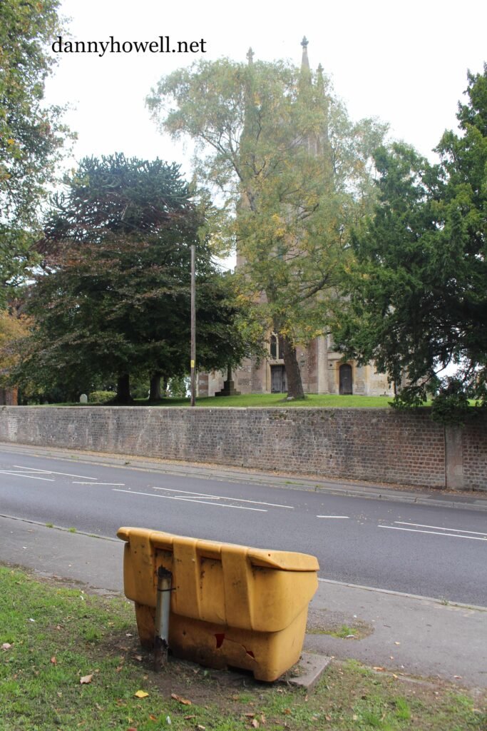 The wall of Christ Church churchyard on the right.