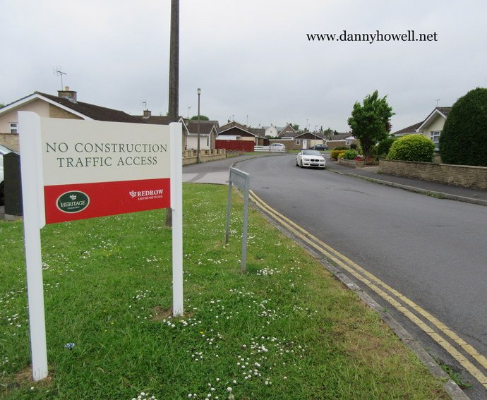 Sign erected at Broxburn Road, Warminster (at its junction with Masefield Road): “No construction traffic access”. The construction traffic is involved with the Redrow Homes residential development (Tascroft Rise) which has commenced west of St Andrews Road.