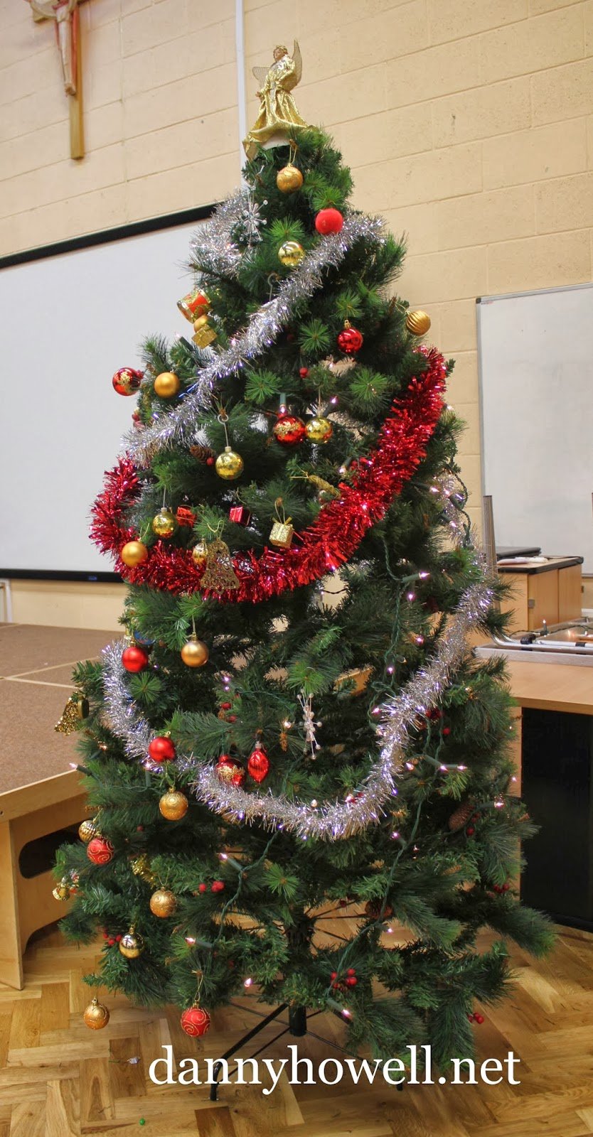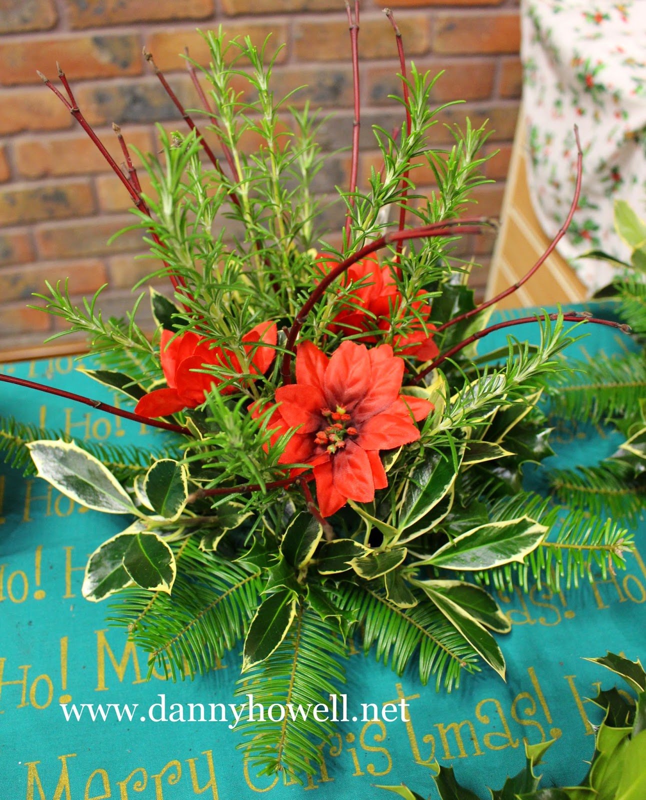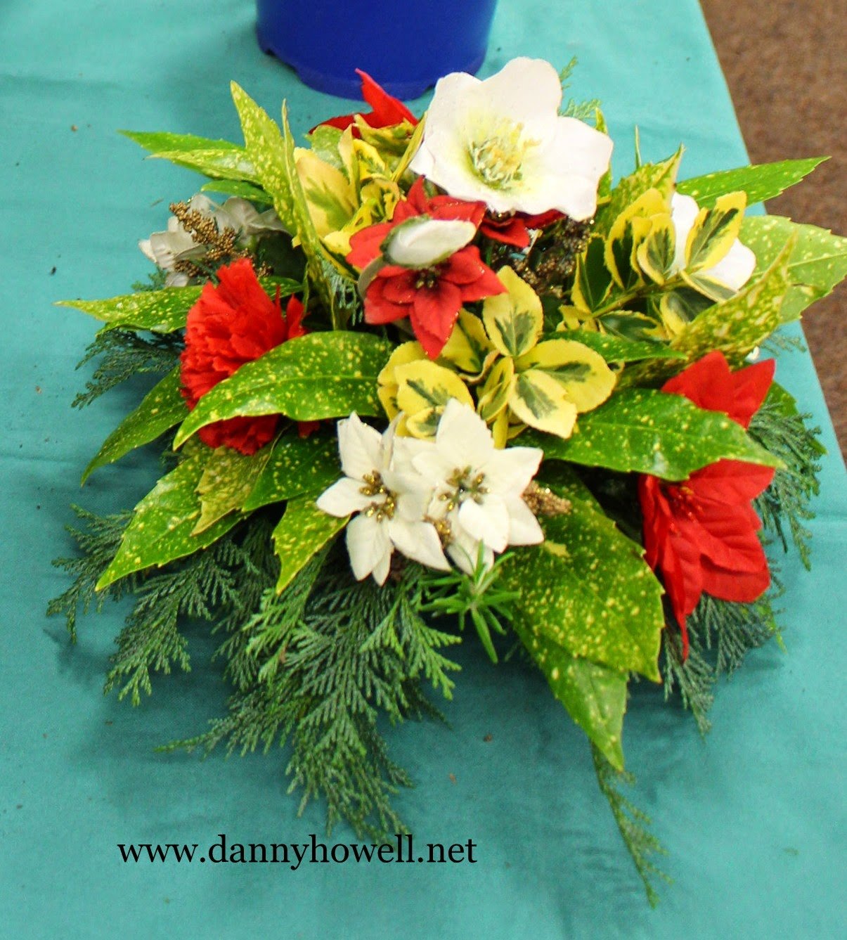 Poinsettias for Christmas interwove with fir cones and evergreens in a wreath on a grave at St. John’s Churchyard, Boreham Road, Warminster. Photograph taken by Danny Howell on Sunday 21st December 2014.