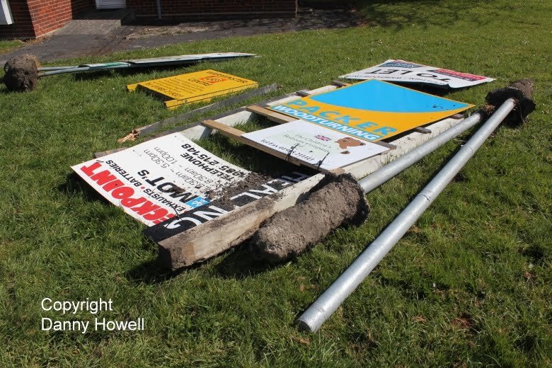 threw the signs into the bushes and long grass