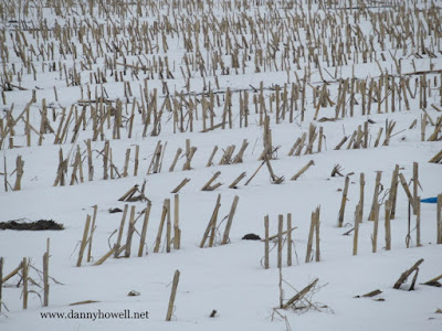 Maize stubble in the snow at Ploughed Field,