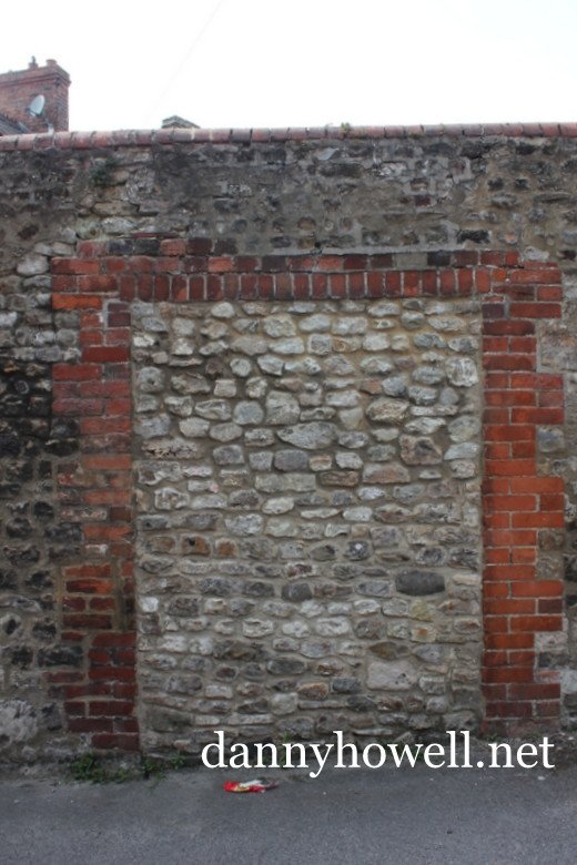 The bricked-up doorway in the wall to the side of the former Ship and Punchbowl, where the beer barrels used to be rolled in; photographed by Danny Howell on Wednesday 28th August 2013.