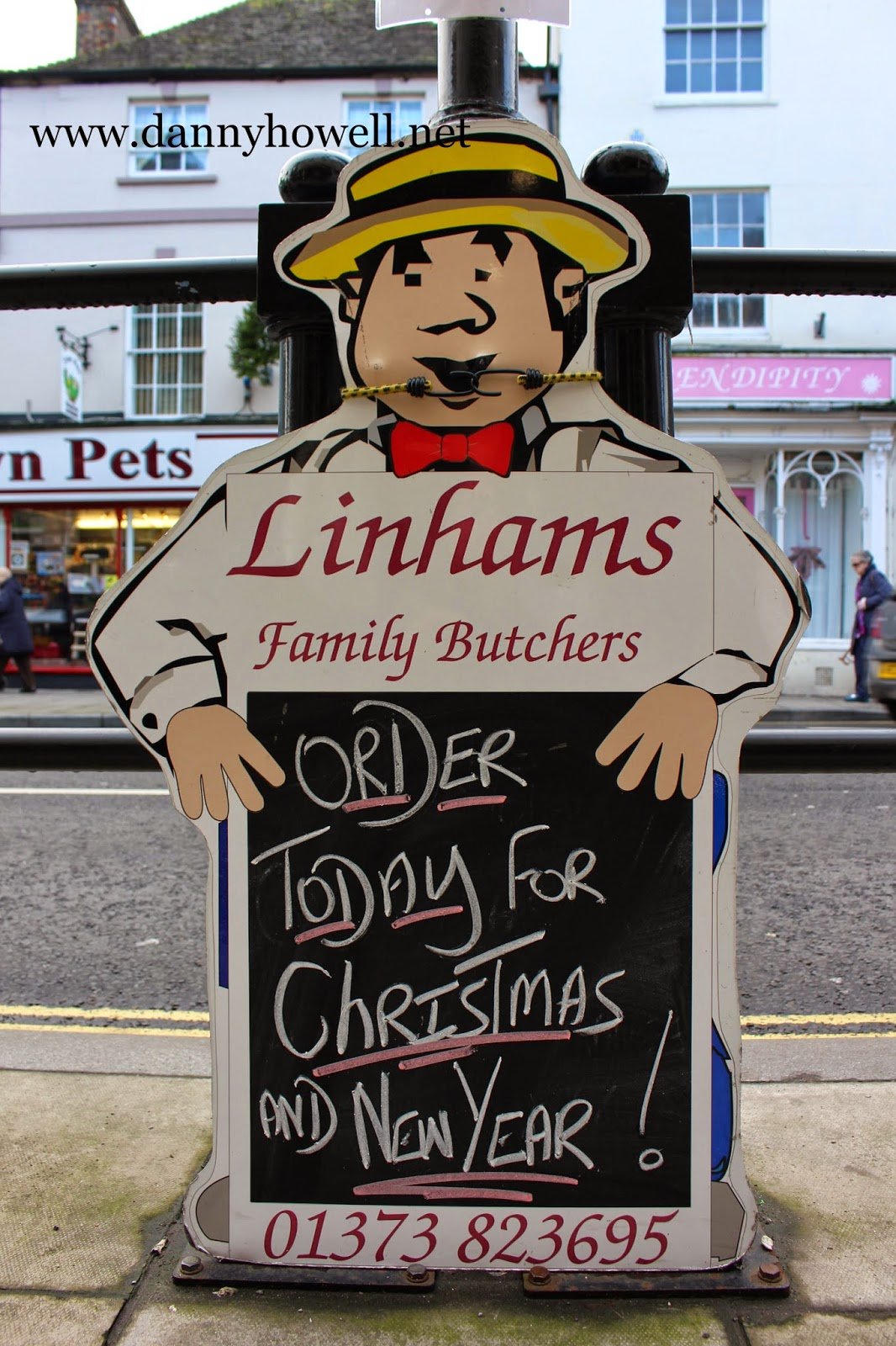 “Linhams, Family Butchers. Order today for Christmas and New Year! 01373 823695.”
