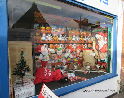 Window decorated for Christmas at