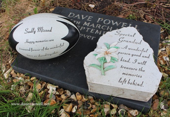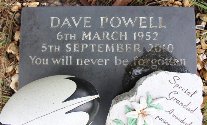 Memorial stone to Dave Powell at St. Aldhelm’s Churchyard, Bishopstrow. The inscription reads: “Dave Powell 6th March 1952 5th September 2010 You will never be forgotten.”