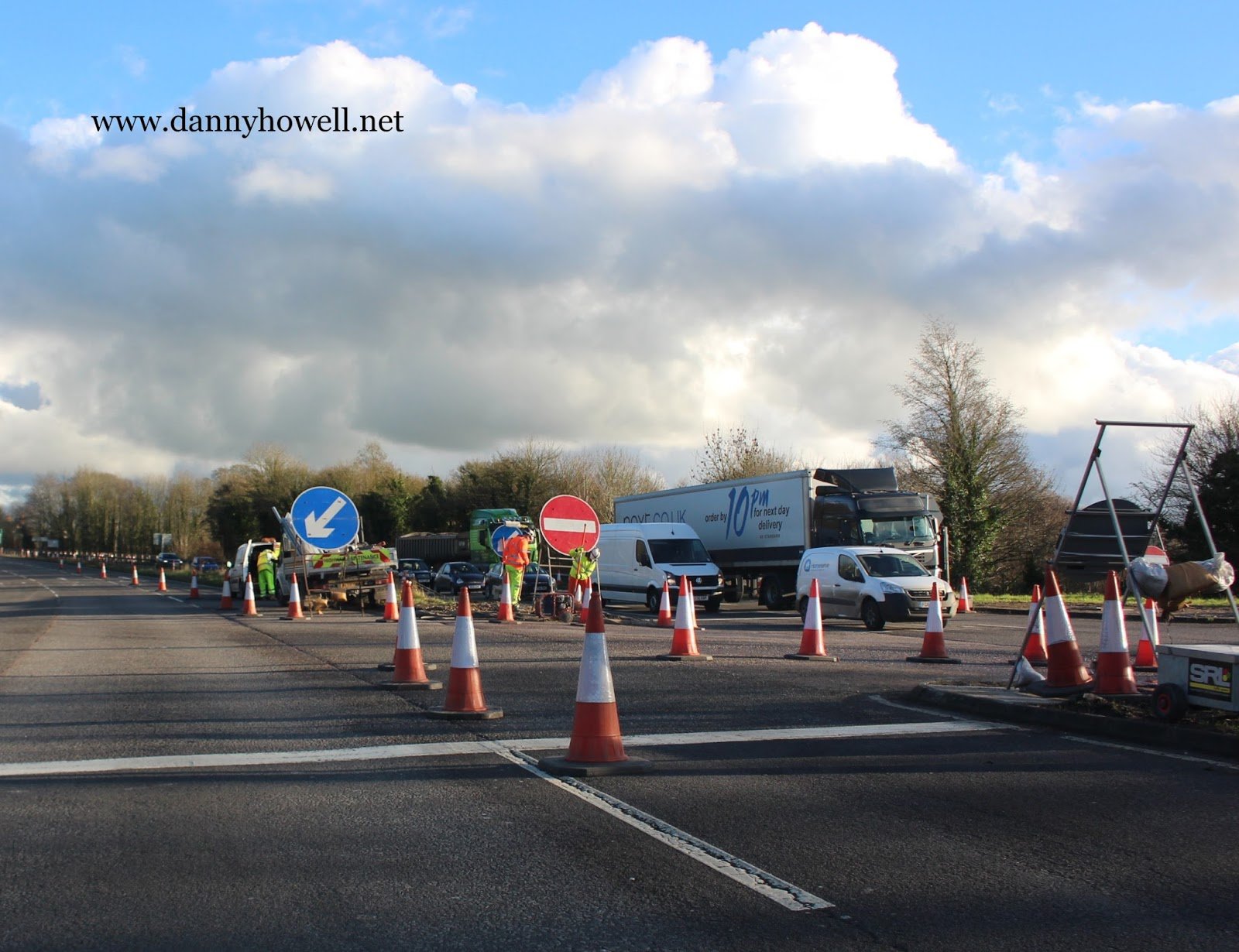 One lane coned off for roadworks on the A36 dual carriageway at Deptford. Photograph taken by Danny Howell on Tuesday 5th January 2016.